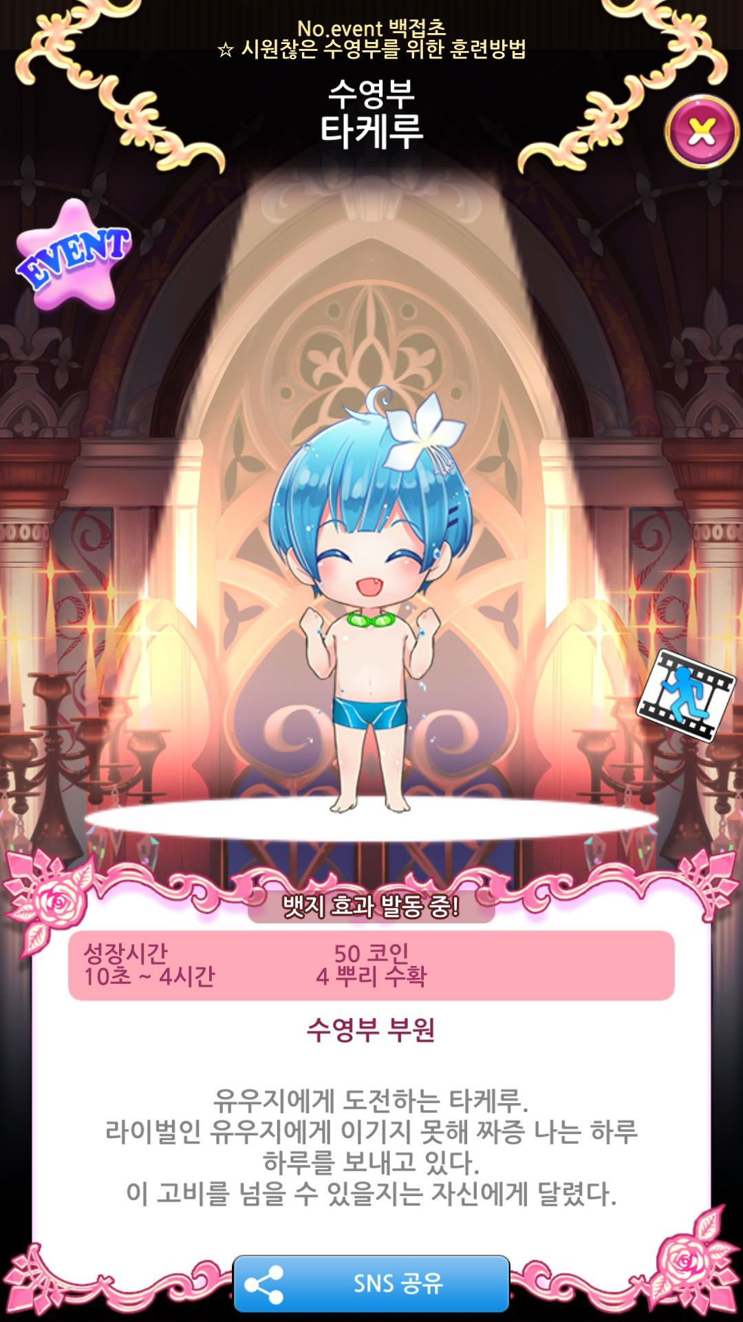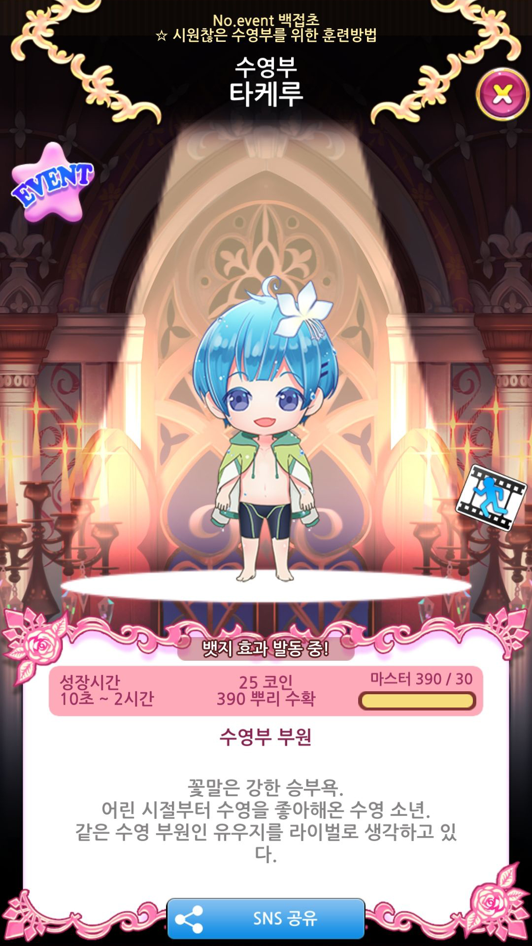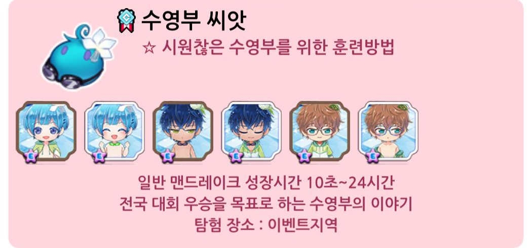 | 6 | 5 탐험 완료 | 수영부 유우지 레어 | 5000 | 3 | 7시간 | 15별 스토리 |