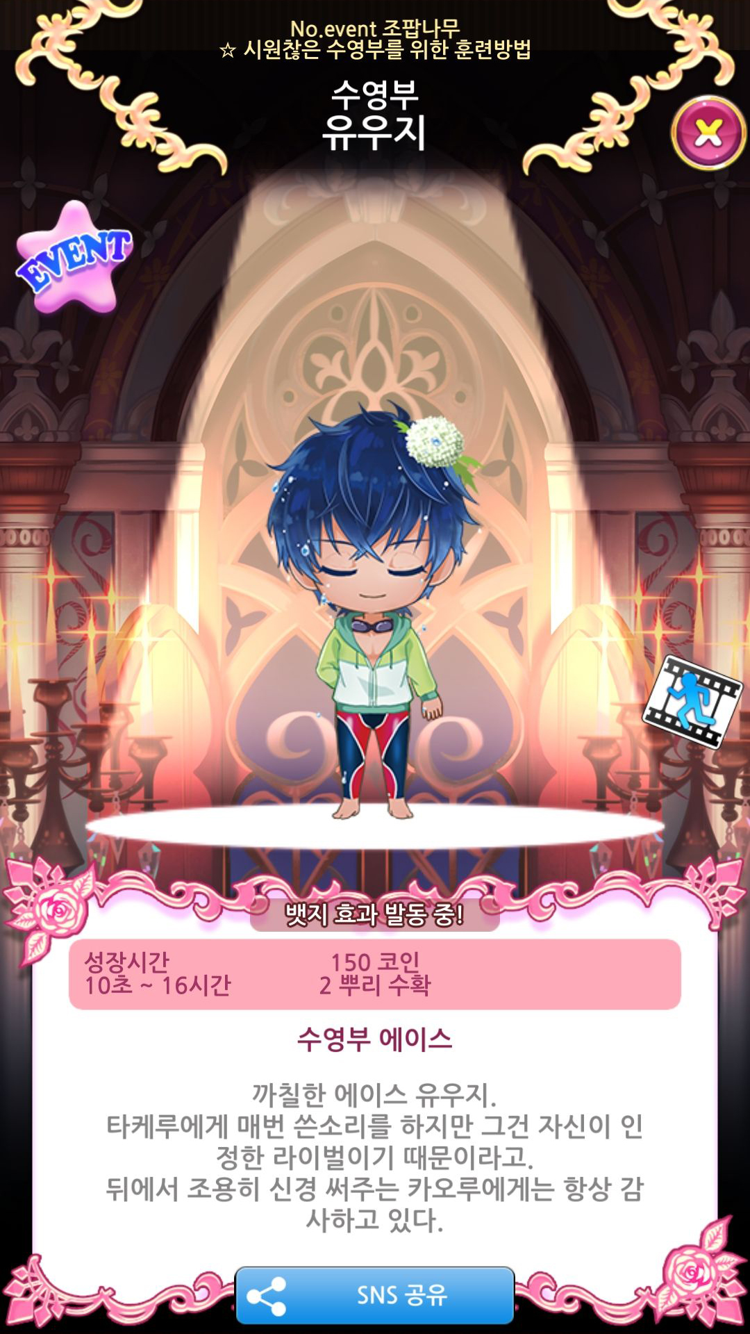 | 2 | 1 탐험 완료 | 수영부 유우지 노말 | 2500 | 3 | 4시간 | 10별 스토리 |
