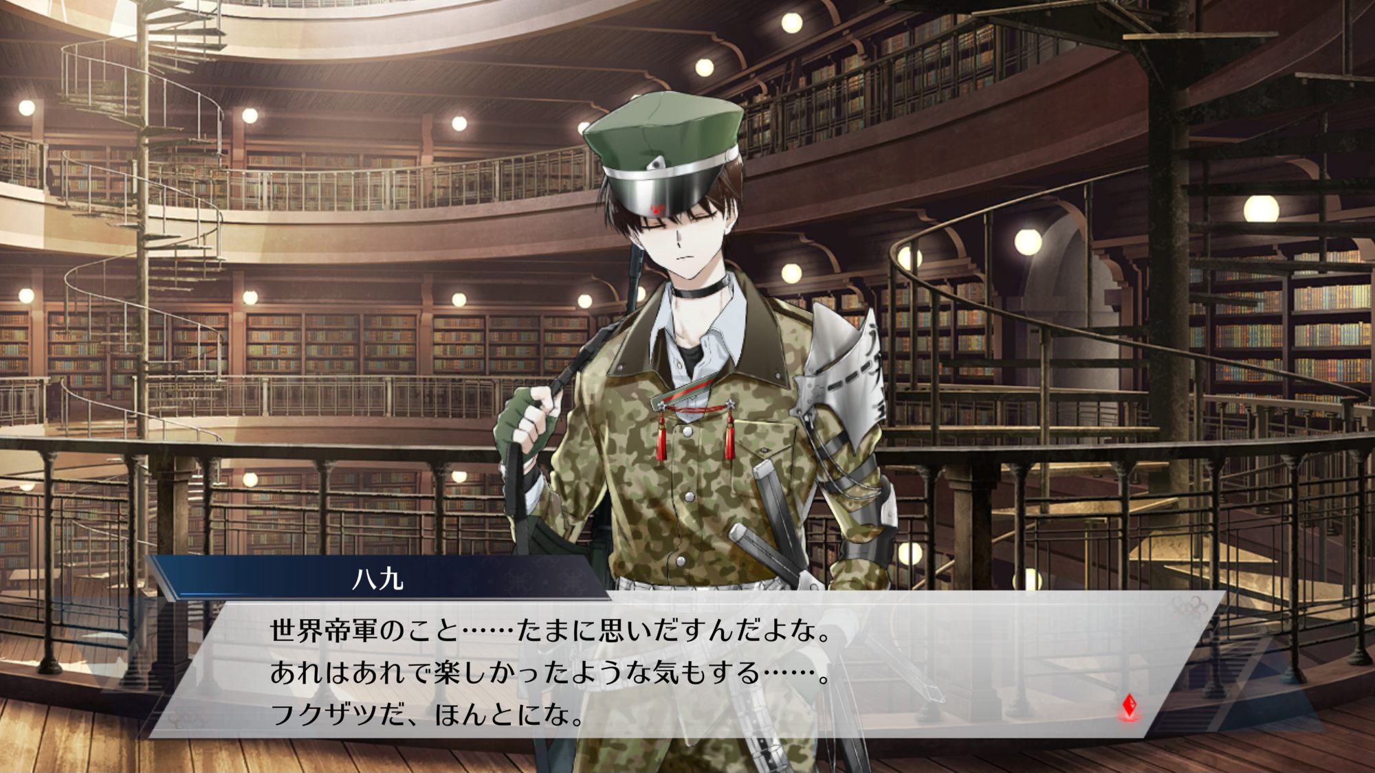 | 세계제군에 대하여 | "진군이니 작전이니 솔직히 아무래도 상관 없어. 하라고 하니까 하는 것 정도야." |