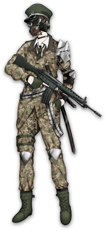 | 자기소개 | 코드 네임은 89. 일본인 체격에 맞춰 설계된 자동소총……이라나 봐. 레지스탕스놈들은 고귀함을 닦는 게 어쩌니 하는데, 난 성능을 올려서 물리적으로 때리는 쪽이 성미에 맞아. 뭐, 애초에 고총 녀석들로서는, 우리의 존재 그 자체가 치트키같은 거지. 얼른 끝내버리자고. |